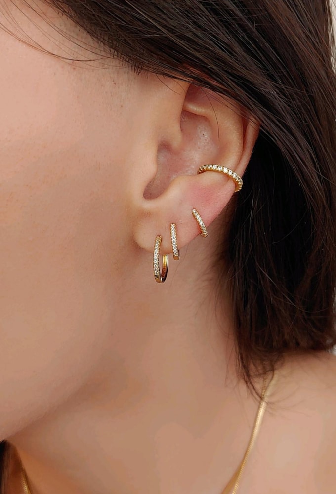 O trio de brincos é uma ótima opção para quem busca combinações práticas e rápidas para o dia a dia.